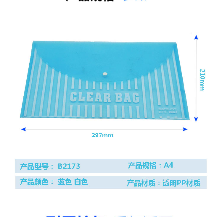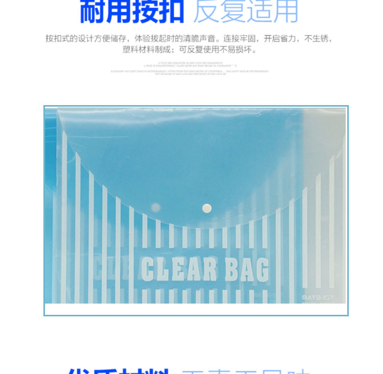 齊心 巨劃算經(jīng)典條紋透明按扣袋 A4 (20個(gè)/套) C318透明